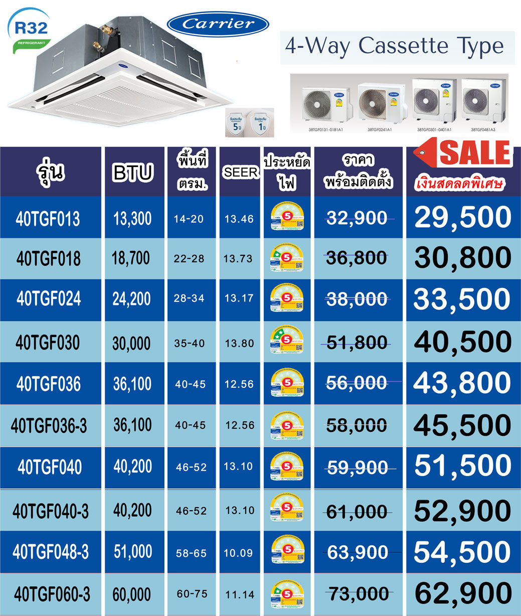 Carrier รุ่น Cassette กระจายลม สี่ทิศทาง