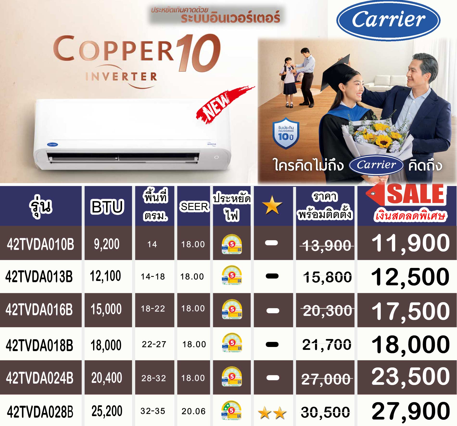 ใหม่ 2025 CARRIER COPPER 10 INVERTER ทองแดงแท้ทั้งชุด