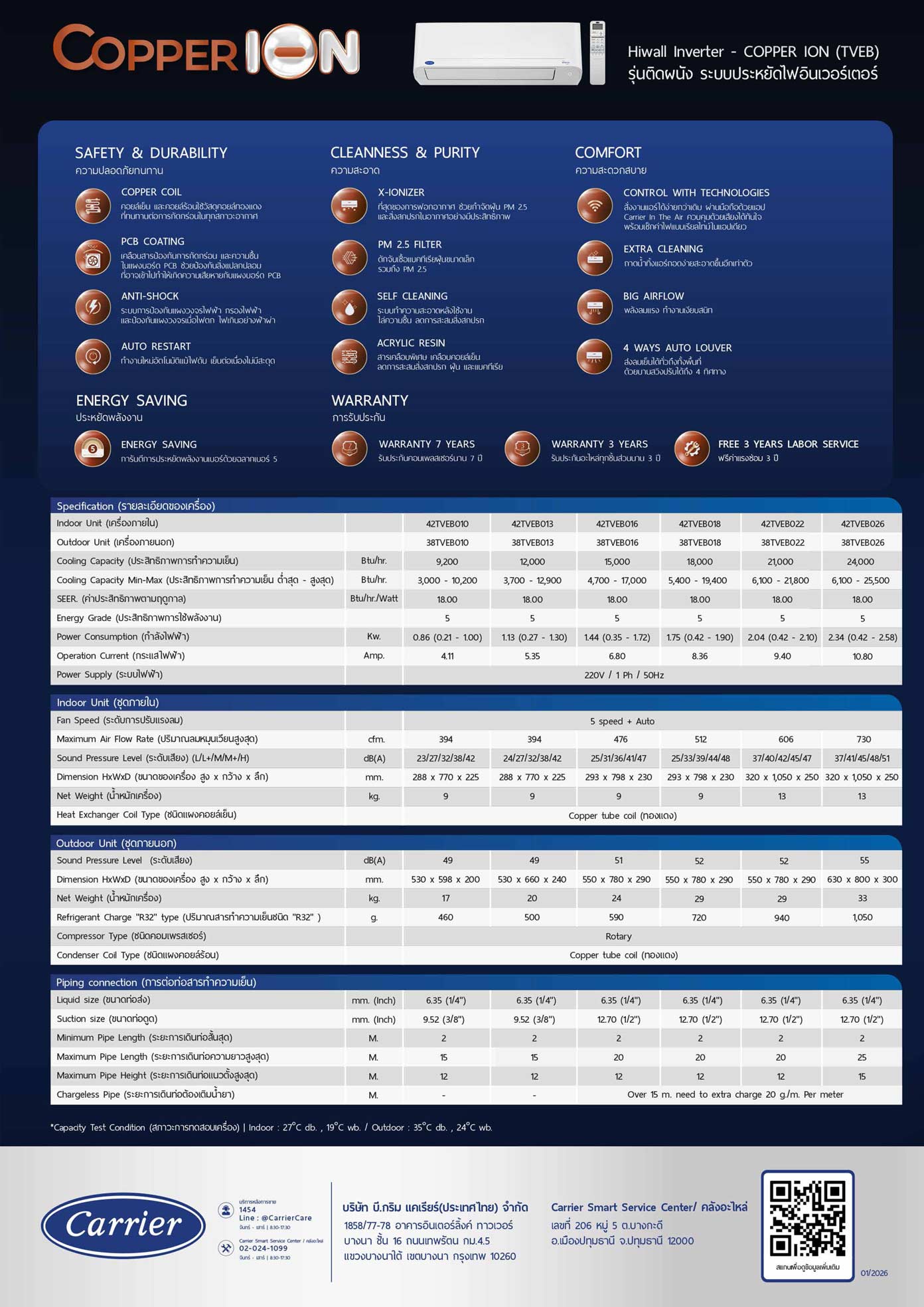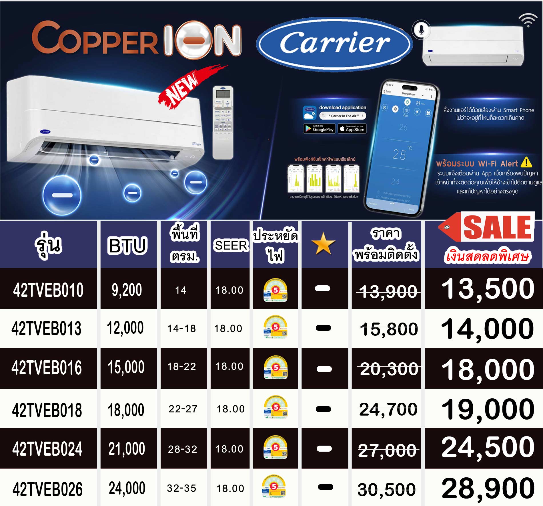 Carrier รุ่น COPPER ION INVERTER WI FI