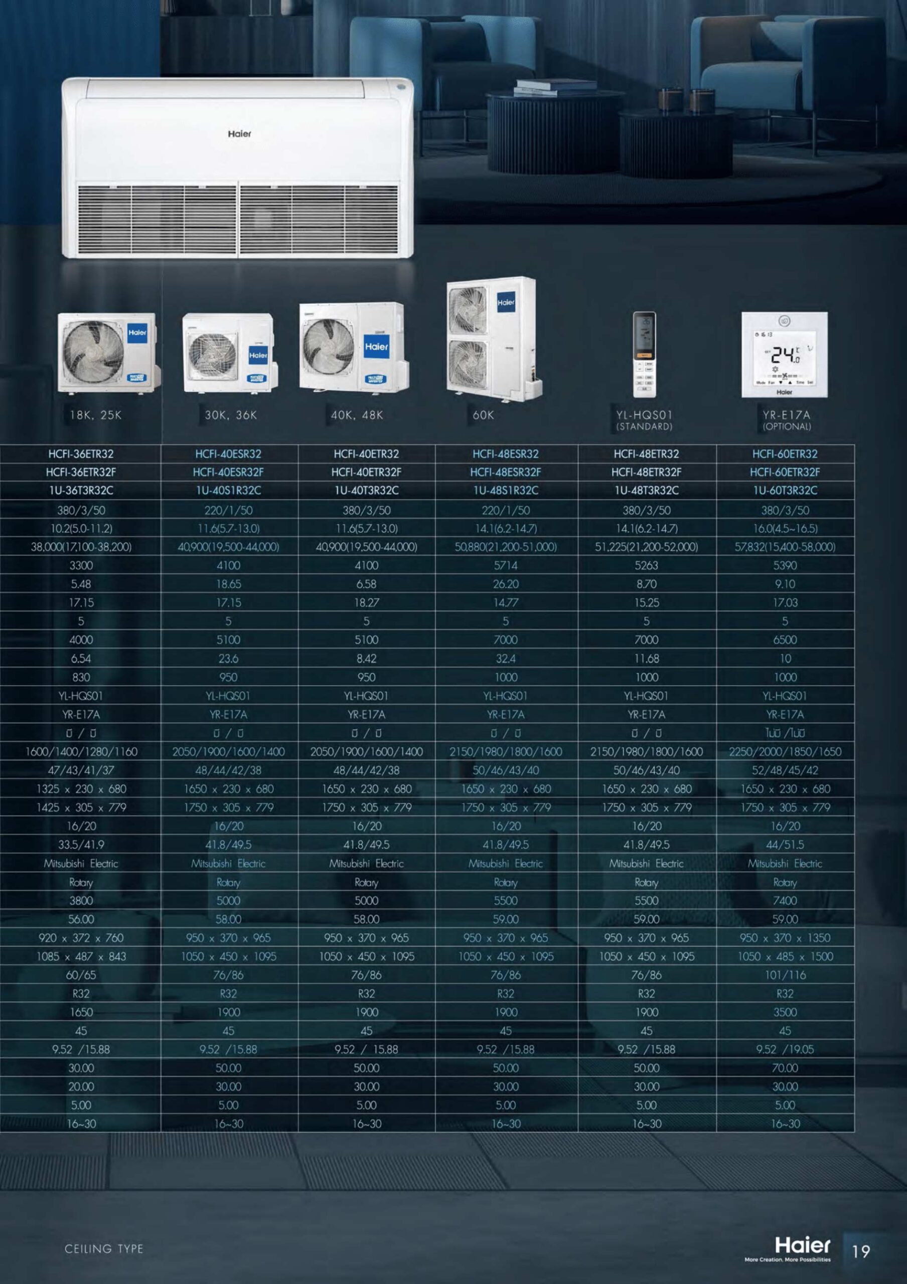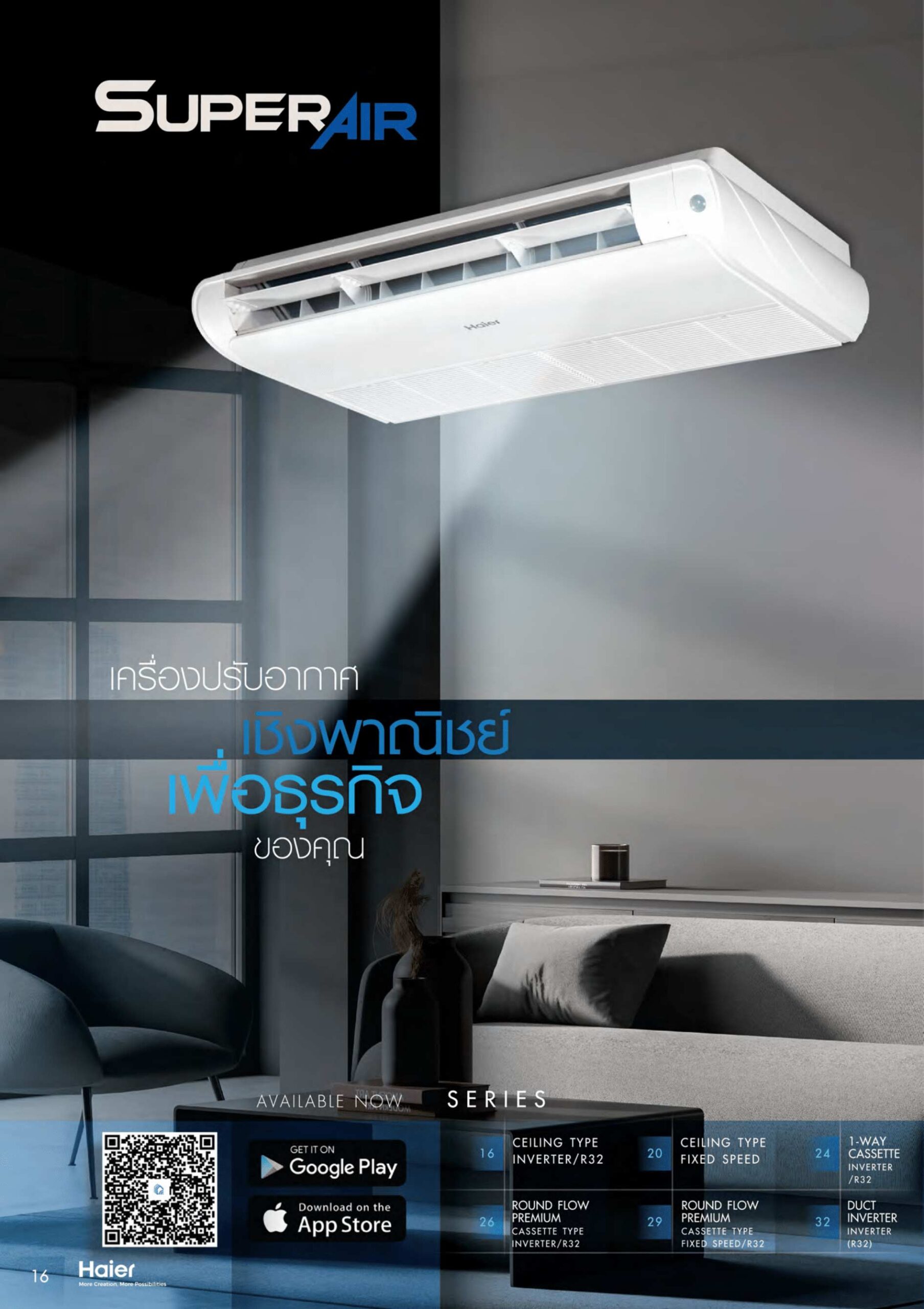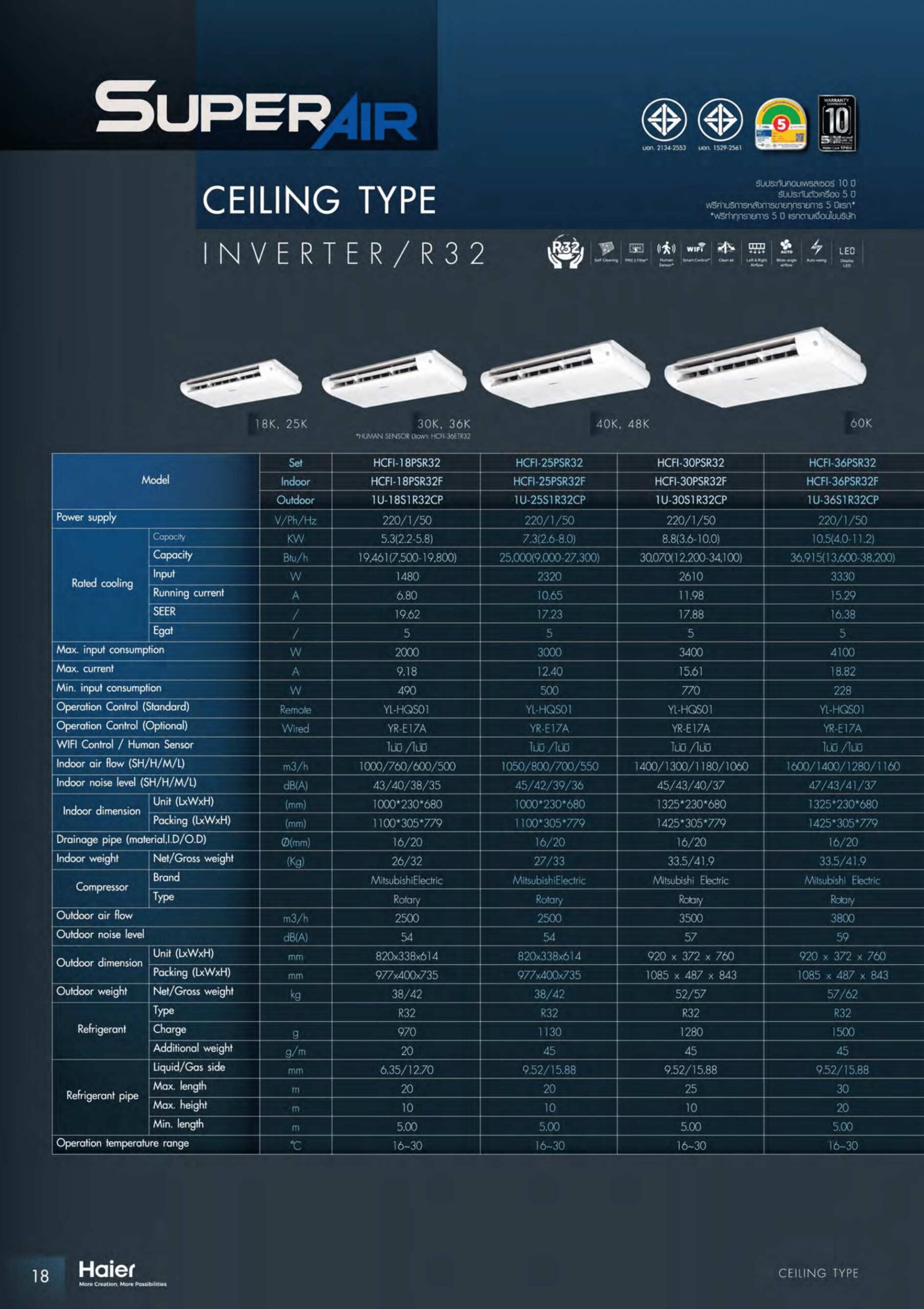HAIER รุ่น ตั้งแขวนฝ้าเพดาน อินเวอเตอร์ R32