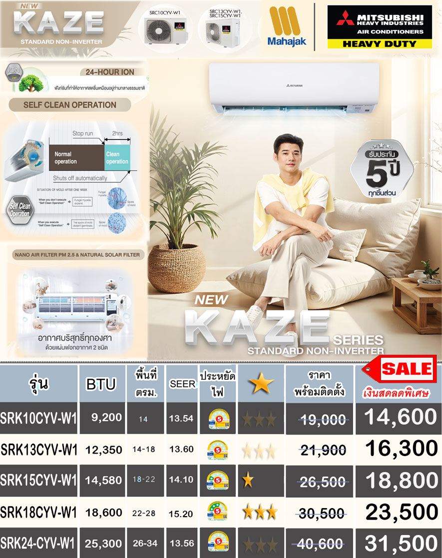 • เครื่องปรับอากาศ มิตซูบิชิ เฮฟวี่ดิวตี้ รุ่นธรรมดา ใหม่ 2026 R32 เย็นไว ซ่อมง่ายประหยัดไฟ