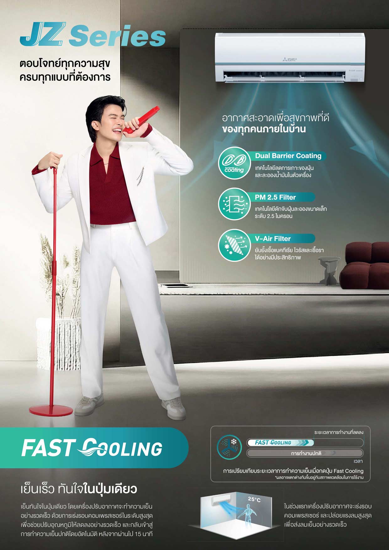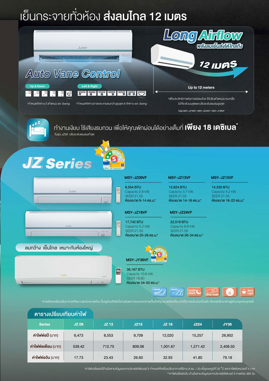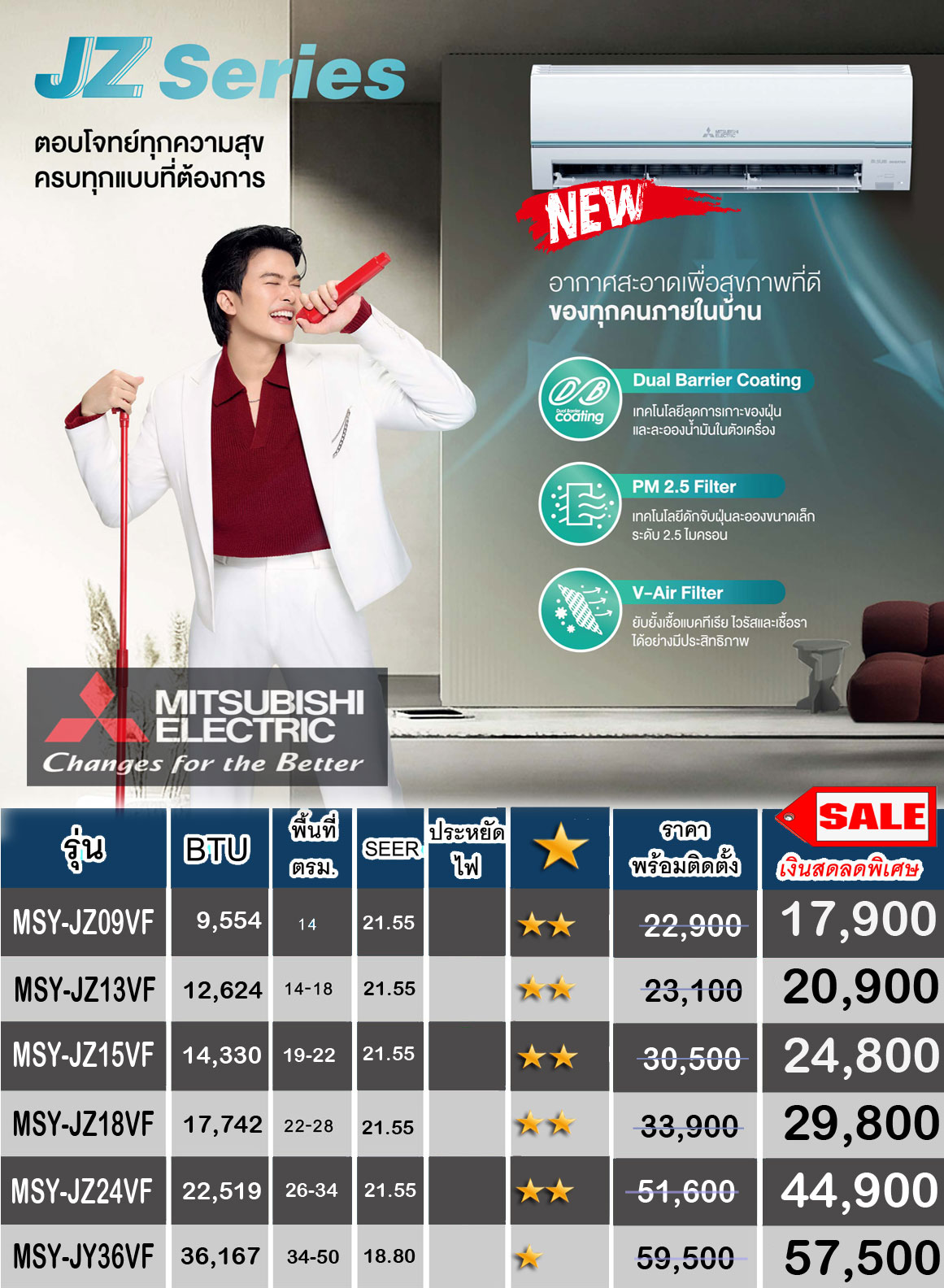 1.รุ่น MSY-JZ09VF ขนาด 9,212 BTU ค่า SEER 20.05 ระบบไฟฟ้า 220V เหมาะกับห้องขนาด 9-14 ตารางเมตร